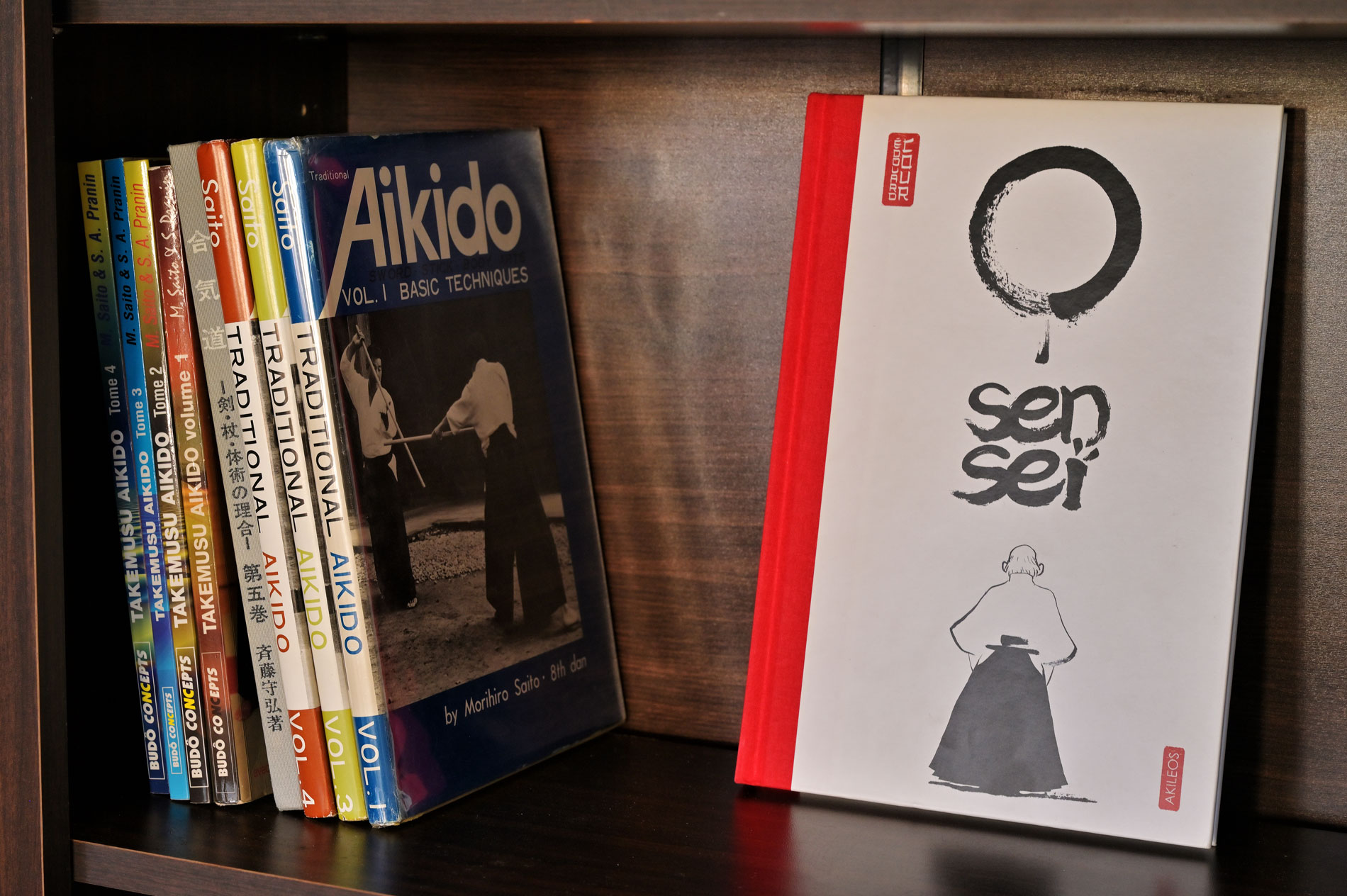 L’AIKIDOJO est doté d’une bibliothèque à disposition des pratiquants, contenant les livres de Saito Morihiro Sensei de 1973 et ceux des années 90, des magazines d’arts martiaux, ainsi que d’autres livres traitant d’aikido, iaido, battodo et mangas.